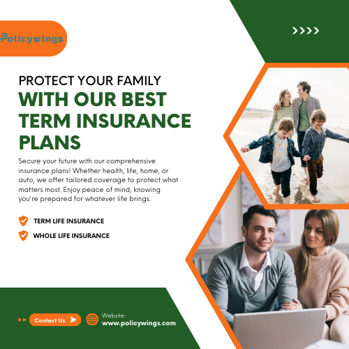 Term insurance is one of the most important ways to protect your family’s future. At Policywings, we help you find the best term insurance plans that offer high life cover at low premiums. These plans are simple, affordable, and give your loved ones financial support in case something happens to you. You can choose from trusted insurance providers, compare benefits, and pick a plan that fits your needs. Whether you want short-term or long-term coverage, Policywings makes it easy to decide. Start planning today and give your family the security they deserve, with the right term insurance plan.