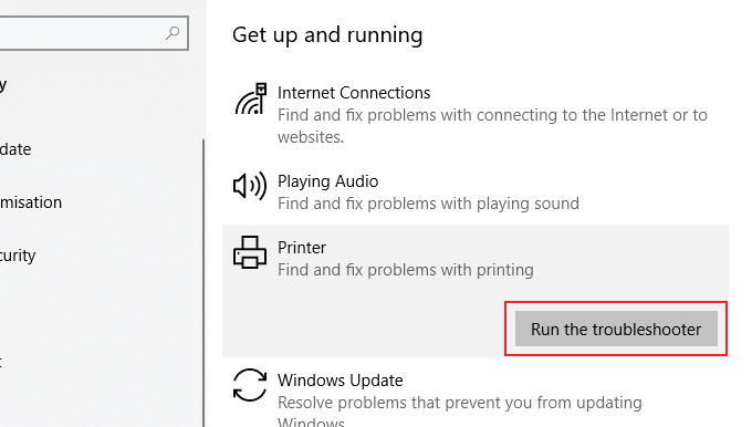 - Then, you can run the Printer Troubleshooter to fix issues.