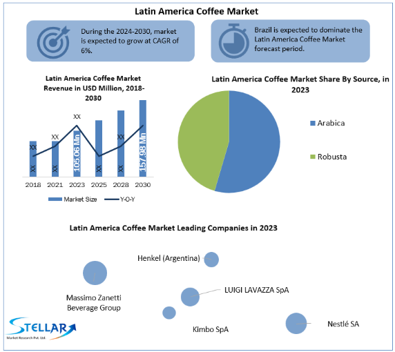 Stellar Market Research, a leading business consultancy firm, has published an in-depth analysis of the Latin America Coffee Market, offering valuable insights and projections. This detailed study covers critical business intelligence, demand analysis, pricing strategies, competitive landscape, and key growth drivers, providing a comprehensive view of the Latin America Coffee market's current state and its future potential.