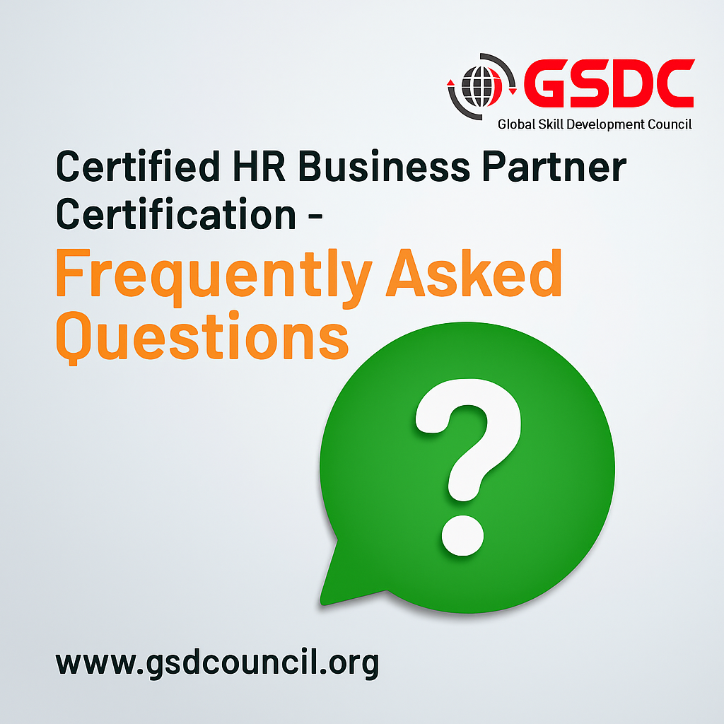 The Certified HR Business Partner certification is a globally recognized credential that validates your ability to align human resources strategies with overall business goals. Offered by GSDC, this program equips you with the skills to act as a strategic partner within your organization.