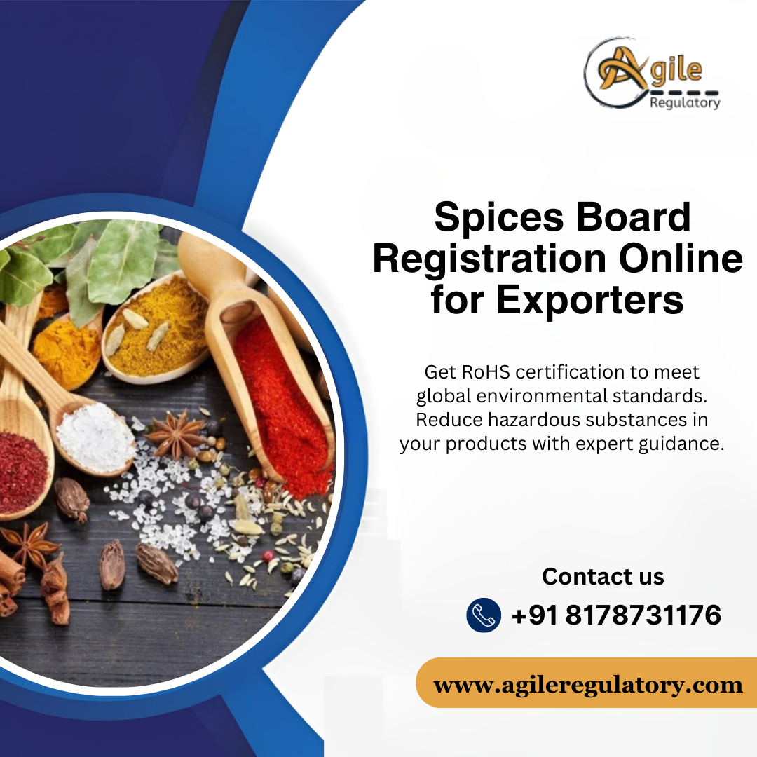 Looking to export Indian spices legally and hassle-free? Agile Regulatory offers end-to-end Spice Board Registration services for exporters across India. From document collection to final approval, we streamline the entire process so you can focus on your business. Whether you're dealing in turmeric, cardamom, or any other Indian spice, registration with the Spices Board of India is mandatory. Our experts ensure fast turnaround, compliance with export norms, and accurate paperwork. Get started today with a trusted partner that simplifies regulatory formalities. Call us now for expert guidance on Spice Board Registration and take your spice export business to the next level.
