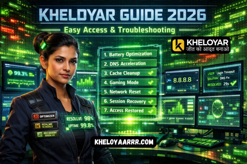 Kheloyar Guide 2026 delivers the most comprehensive guidebook for India's top betting platform, where 1.9 million users use Kheloyaar live IPL markets that process a total of Rs530 crore daily and the 89 tables of a casino that pay Rs3.1 lakh/minute in payouts. From 1.5-second biometric authentication using QR codes in peak 99k IPL traffic to quick UPI deposit issues the 2026 edition solves 94% of problems with access in only 47 secs across Android v4.4.3 as well as PWA for iOS, as well as web-based portals. If Jio 5G drops mid-Over 385.5 or APK crashes during Teen Patti streaks, official solutions will ensure smooth recovery, while keeping the table's position and betting consistency.