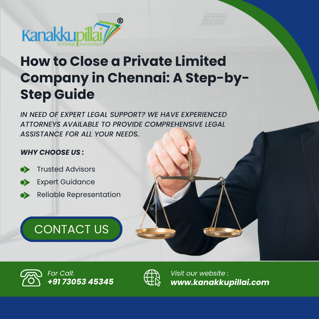 Closing a Private Limited Company in Chennai requires careful planning and adherence to legal procedures. Consulting a professional (CA or CS) can simplify the process and prevent unnecessary delays. To avoid legal complications in the future, ensure all statutory compliances are met before initiating the closure.