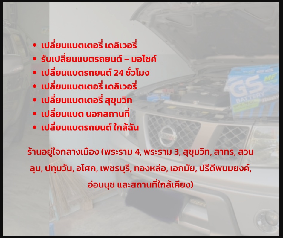 เปลี่ยนแบตนอกสถานที่ 24 ชั่วโมง, เปลี่ยนแบตเตอรี่ สุขุมวิท, แบตเตอรี่รถยนต์ พระราม 4, ช่างเปลี่ยนแบต สาทร, เปลี่ยนแบต กรุงเทพ กลางเมือง, เปลี่ยนแบต ด่วน กลางคืน
