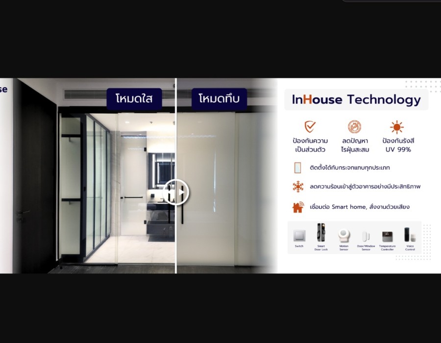 ฟิล์มไฟฟ้า INHOUSE Smart Film & Smart Glass: เปลี่ยนกระจกใสเป็นทึบ สร้างความเป็นส่วนตัวฟิล์มไฟฟ้า INHOUSE Smart Film & Smart Glass เป็นผลิตภัณฑ์ที่ช่วยปรับเปลี่ยนกระจกธรรมดาให้เป็นกระจกอัจฉริยะ ด้วยคุณสมบัติที่สามารถปรับระดับความใสของกระจกได้ตามต้องการ ทำให้สามารถสร้างความเป็นส่วนตัวและควบคุมการเข้าถึงแสงได้อย่างมีประสิทธิภาพ