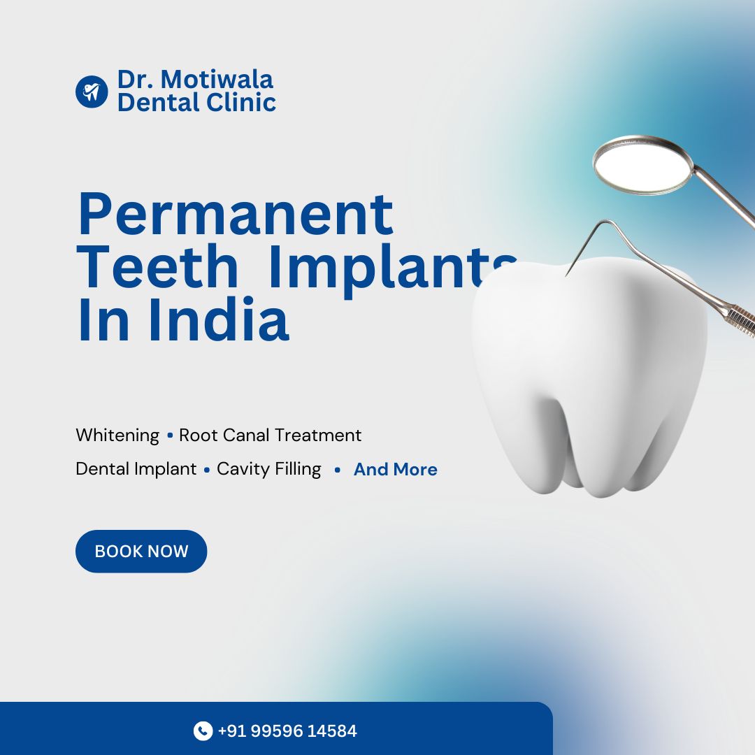Are you tired of loose dentures, missing teeth, or constant dental discomfort? Permanent teeth implants offer a life-changing solution for people seeking a confident, functional, and natural-looking smile. If you’re exploring permanent dental implants in India, you’re in the right place. At Dr. Motiwala Dental Clinic, we specialize in providing world-class implant solutions that combine advanced technology, skilled expertise, and affordability—all under one roof.