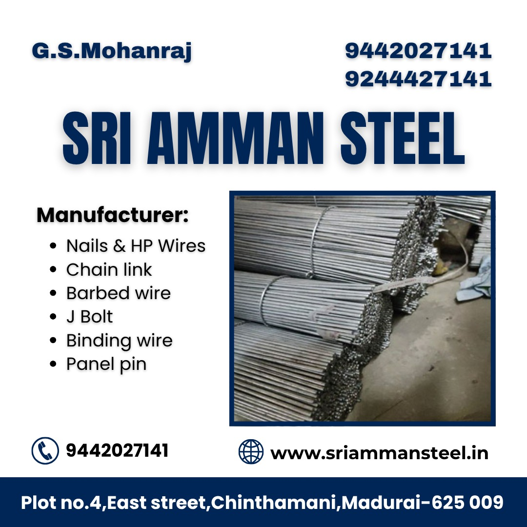 📞 Reach out to Sri Amman Steel today for all your steel nails, fencing wires, and fasteners requirements in Madurai and across Tamil Nadu!