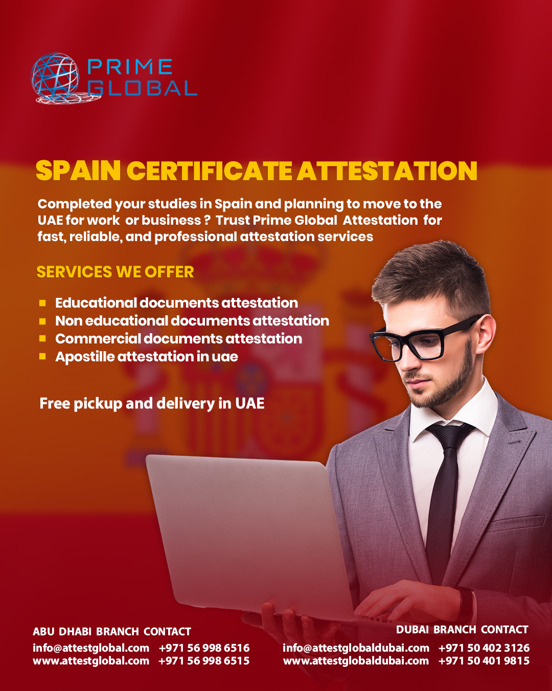 Prime Global attestation services in abu dhabi is one of the trusted names in the UAE for handling document attestation services. Whether you need to attest Spanish educational certificates for employment, personal certificates for visa purposes, or commercial documents for business expansion, Prime Global Attestation offers: