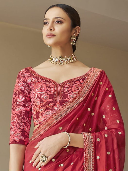 A crimson saree is ideal for numerous events, consisting of weddings, parties, and different formal activities. Depending at the design and material, the red saree may be made to look extravagant or extra understated. For a traditional look, one power opt for a silk or satin red saree with detailed embroidery, while a purple saree made from chiffon or georgette may be additional suitable for informal packs. However of the occasion, a red saree remains a stunning choice that reflects grace and sophistication.
