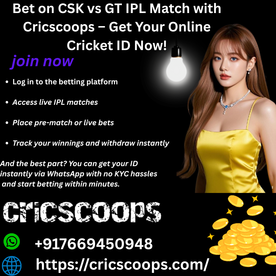 The IPL 2025 season is heating up and fans are all geared up for one of the most thrilling encounters – Chennai Super Kings (CSK) vs Gujarat Titans (GT). With legends like MS Dhoni and Shubman Gill leading their teams, this match is bound to be a spectacle. But while fans enjoy the action, smart bettors are turning to Cricscoops – the most trusted online cricket ID provider for safe, fast, and reliable IPL betting.