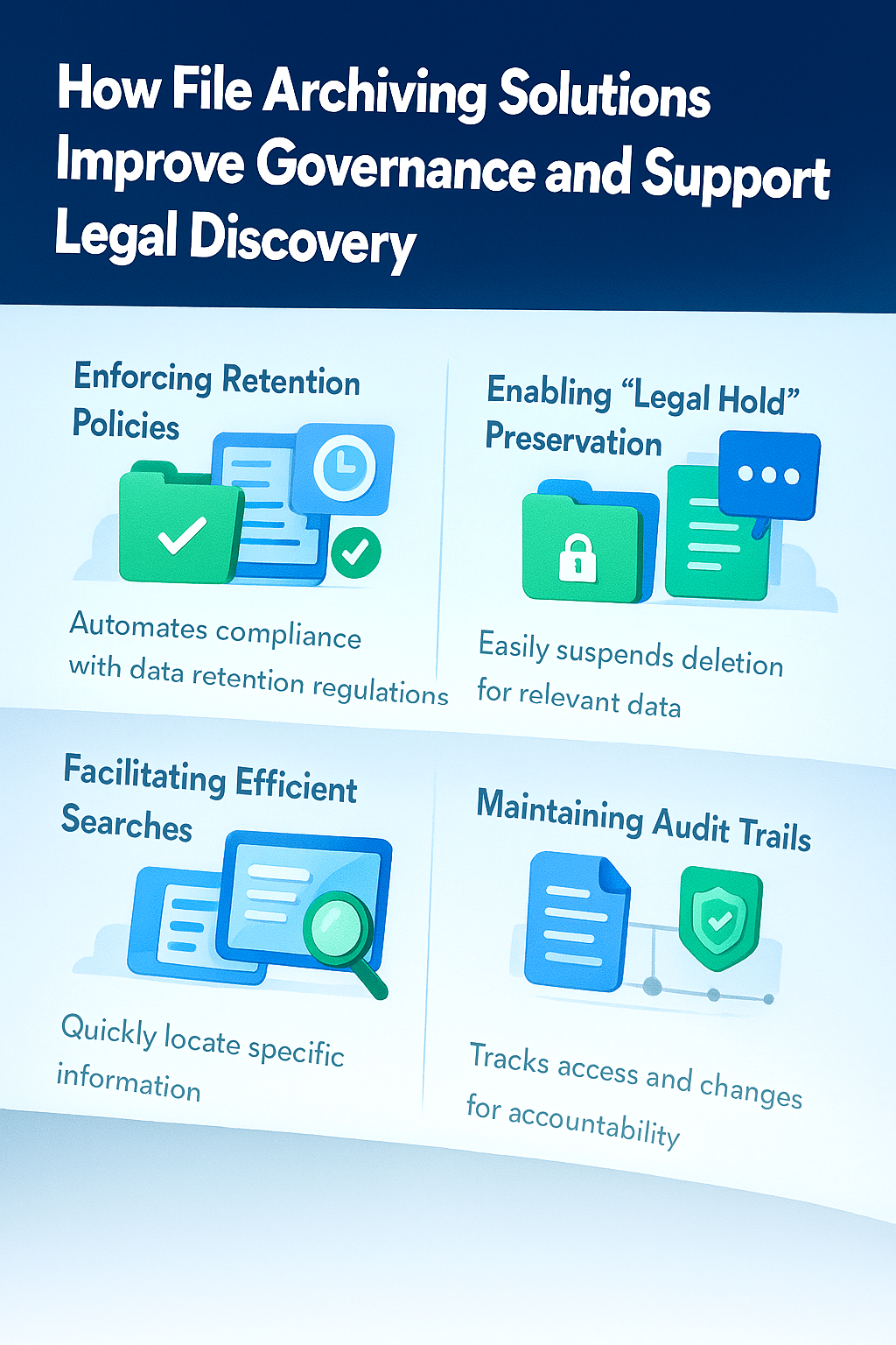A proactive file archiving legal discovery framework ensures your organization is always ready—reducing exposure while enhancing operational resilience.