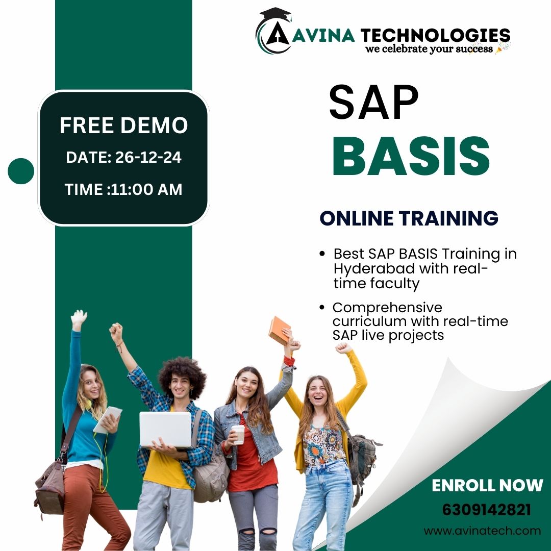 Avina Technologies is the best SAP BASIS training institute in Hyderabad, known for delivering top-notch training with a focus on real-world applications. Our course is led by industry experts who provide live training sessions, ensuring students gain practical skills through real-time SAP projects. With access to class recordings and well-structured study materials, learners can master SAP BASIS concepts effectively.