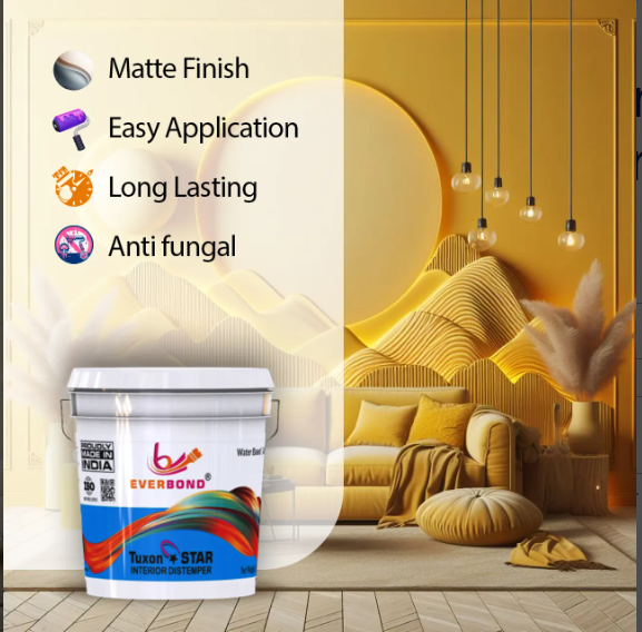 Transform the look of your interiors with Everbond’s Distemper Paint, designed to deliver a smooth, even finish. Perfect for walls and ceilings, this high-quality paint provides a vibrant look while offering excellent coverage and durability. Whether you're refreshing your living room or adding a new touch to your workspace, Everbond Distemper Paint ensures long-lasting beauty that withstands wear and tear. It is available in a variety of colors to suit every aesthetic, ensuring your space reflects your unique style. Easy to apply and maintain, this paint is an ideal choice for anyone looking to rejuvenate their home or office without compromising on quality. Elevate your surroundings today with the trusted name in paints – Everbond!