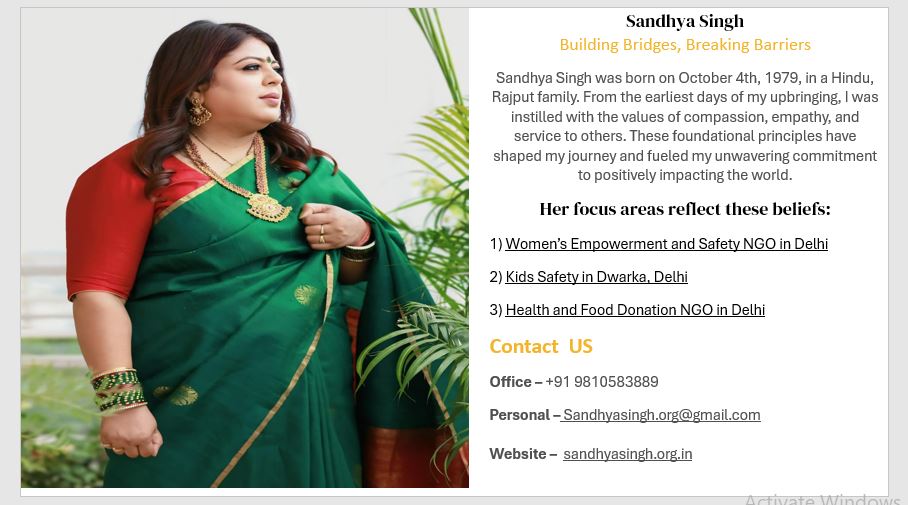 Leading social service organisations in Dwarka Delhi the sandhya singh works tirelessly to uplift underprivileged groups.