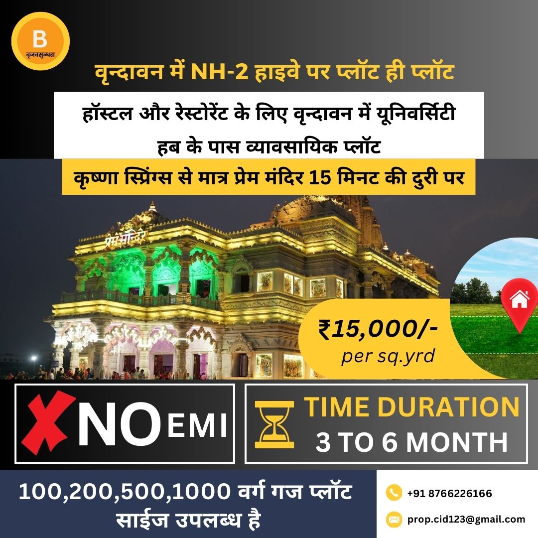 Brij Vasundhara is a logo-new gated community in Vrindavan that offers well-advanced plots for the construction of your own home.Residents revel in a spread of way of life facilities offered via this property. Given its awesome civic infrastructure and close proximity to the metropolis's commercial enterprise centers, Vrindavan is some of the finest locations for home construction. These plots are organized for occupancy, and you may have a satisfied existence in those residences.