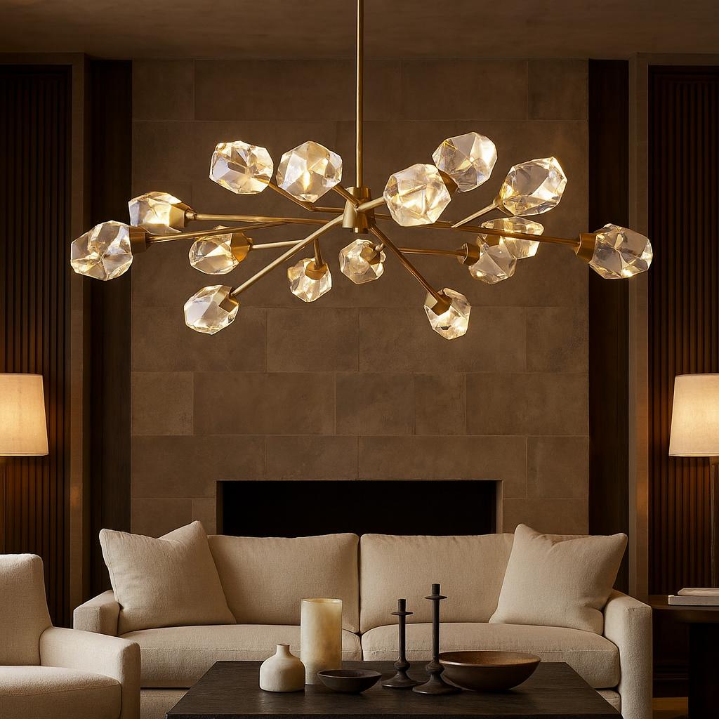 If your space embodies the drama and opulence of Art Deco, your luxury modern chandeliers must match this theatrical flair. Think high contrast, symmetry, and materials that exude luxury.