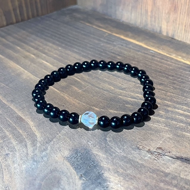 The Shadow Defender bracelet features deep, powerful Black Tourmaline beads, each carefully selected for its quality and energy. Interspersed among these are Clear Quartz stones, known for their amplifying properties, enhancing the protective and grounding effects of the Black Tourmaline. The addition of gold accents not only elevates the bracelet's aesthetic appeal but also symbolizes the infusion of light and positivity. Handcrafted with care and infused with Reiki energy, this bracelet is a testament to the fusion of beauty and purpose.