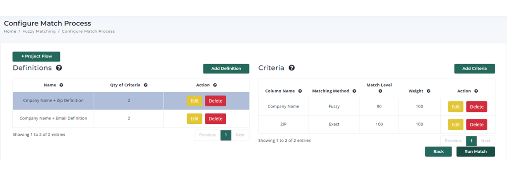 1. Fuzzy Matching: Identifies similar but not identical records (e.g., “Jane Doe” vs. “J. Doe”) and provides customizable thresholds for accuracy.