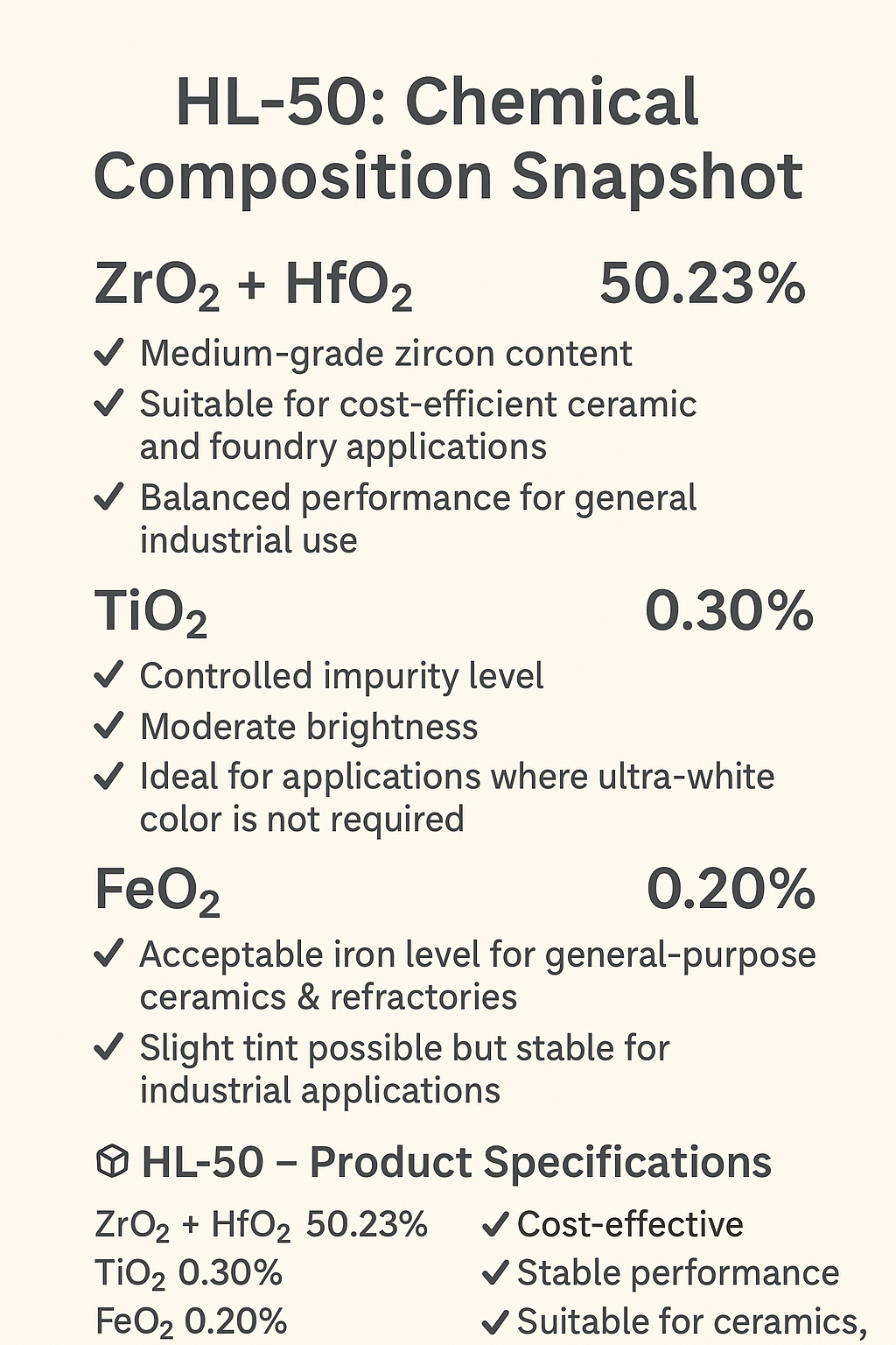 HL-50 Chemical Composition Zircon Grade Specs & Applications