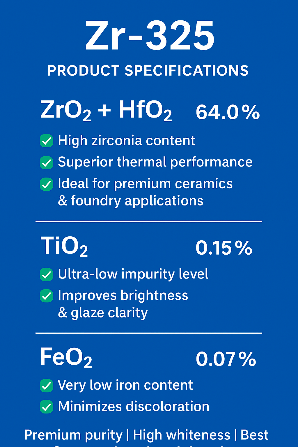 Zircon Zr-325 Product Specifications High Purity Zirconium Silicate