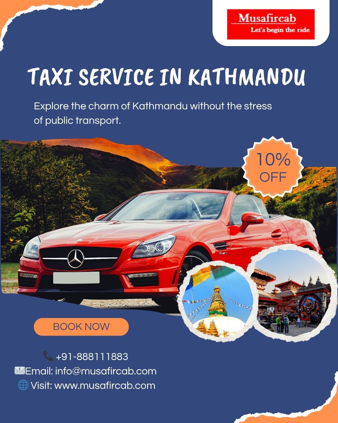 Musafircab stands out as the ideal choice for Taxi services in Kathmandu, offering not just transportation but a complete travel experience tailored to your comfort, convenience, and budget. From reliable airport transfers to flexible hourly rentals, from enriching sightseeing tours to multi-day journeys across Nepal, we provide every traveller with seamless, stress-free service backed by professional drivers and round-the-clock support. With our deep understanding of local routes, commitment to punctuality, and dedication to customer satisfaction, we make sure your time in Kathmandu is not only enjoyable but truly memorable. When you choose Musafircab, you’re choosing more than just a cab — you’re choosing a travel partner that puts your journey first.