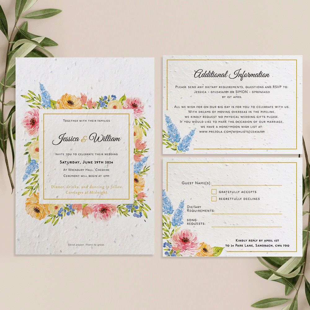Seed paper, also known as plantable paper, is a biodegradable material embedded with seeds. Crafted from recycled paper pulp, it's infused with a variety of seeds such as wildflowers, herbs, or vegetables, depending on the desired outcome. The concept is simple yet ingenious: instead of discarding the invitation after reading it, guests can plant it in soil, water it, and watch as the paper decomposes to reveal sprouts of new life.