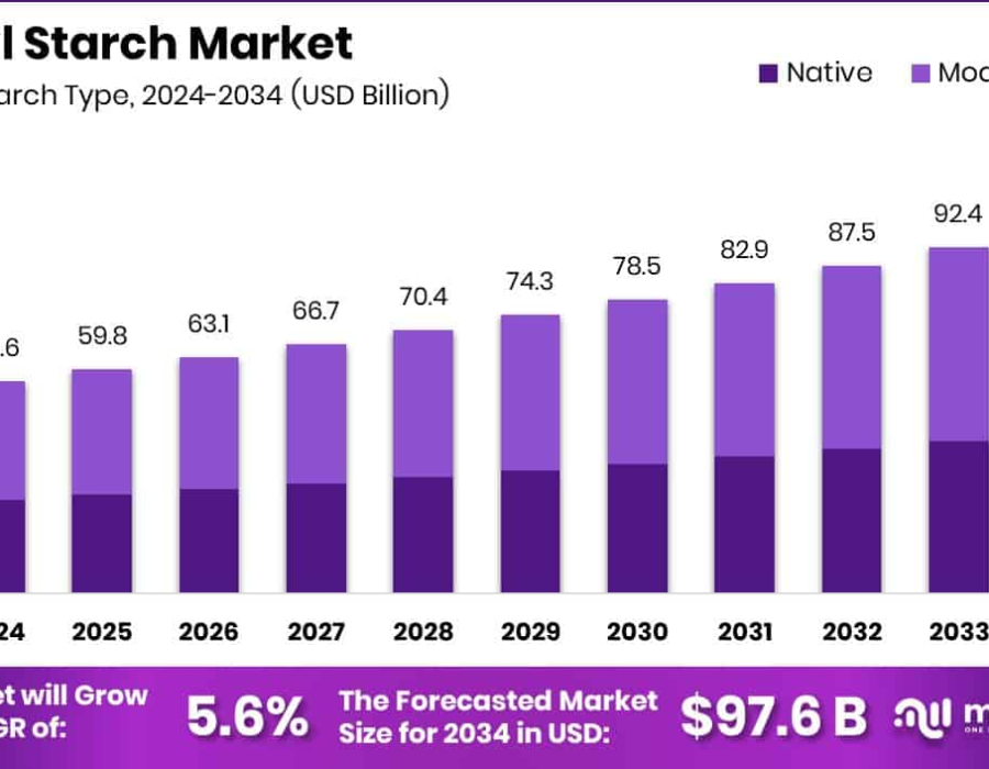 The global starch market is poised for strong growth, expected to reach around USD 97.6 billion by 2034, up from USD 56.5 billion in 2024, growing at a CAGR of 5.6% during the forecast period (2025–2034). Starch, a naturally occurring carbohydrate found in plants like corn, wheat, potato, and cassava, plays an essential role in many industries from food and beverage to pharmaceuticals and bio-based packaging. Its ability to act as a thickener, stabilizer, and binder makes it a versatile ingredient in a wide range of applications.