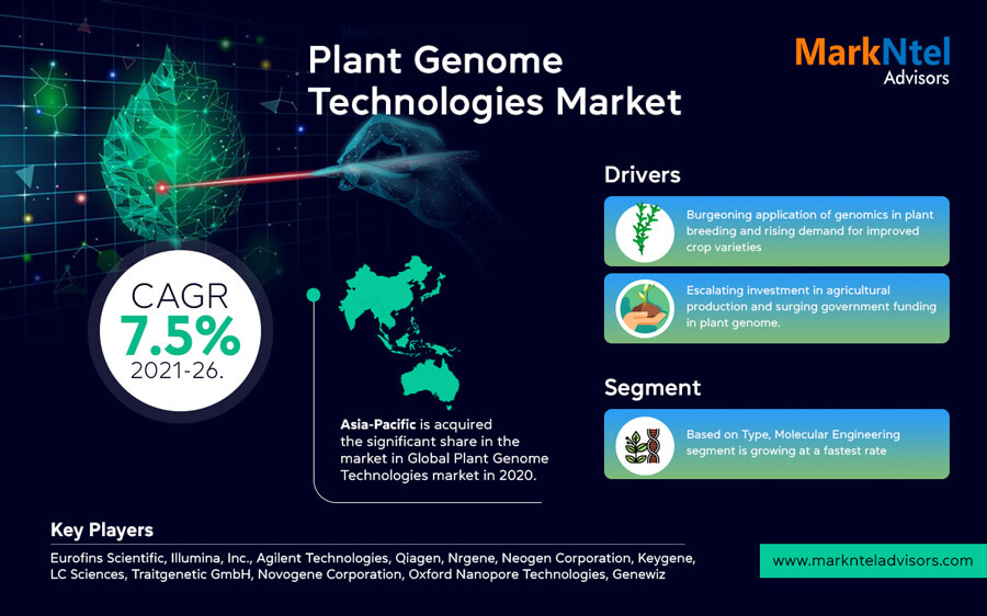 The MarkNtel Advisors' Plant Genome Technologies Market Analysis, 2021, offers the stakeholders a thorough, meticulous, and accurate study. This report includes important factors that influence the overall industry expansion across various geographies, such as trends and current developments, drivers, opportunities, difficulties, and restraints.