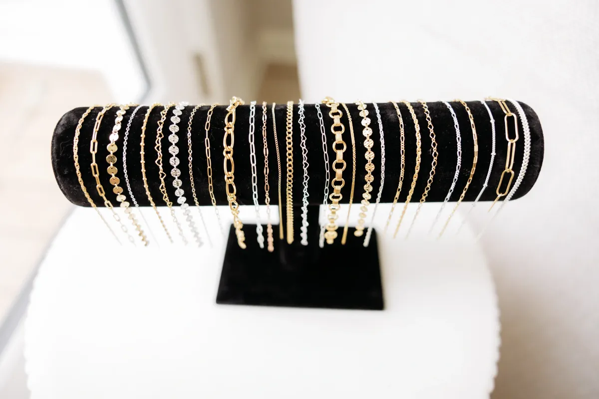 Each piece—whether it’s a bracelet, anklet, ring, or necklace—is crafted and welded directly onto you for a custom fit that feels weightless and looks stunning.