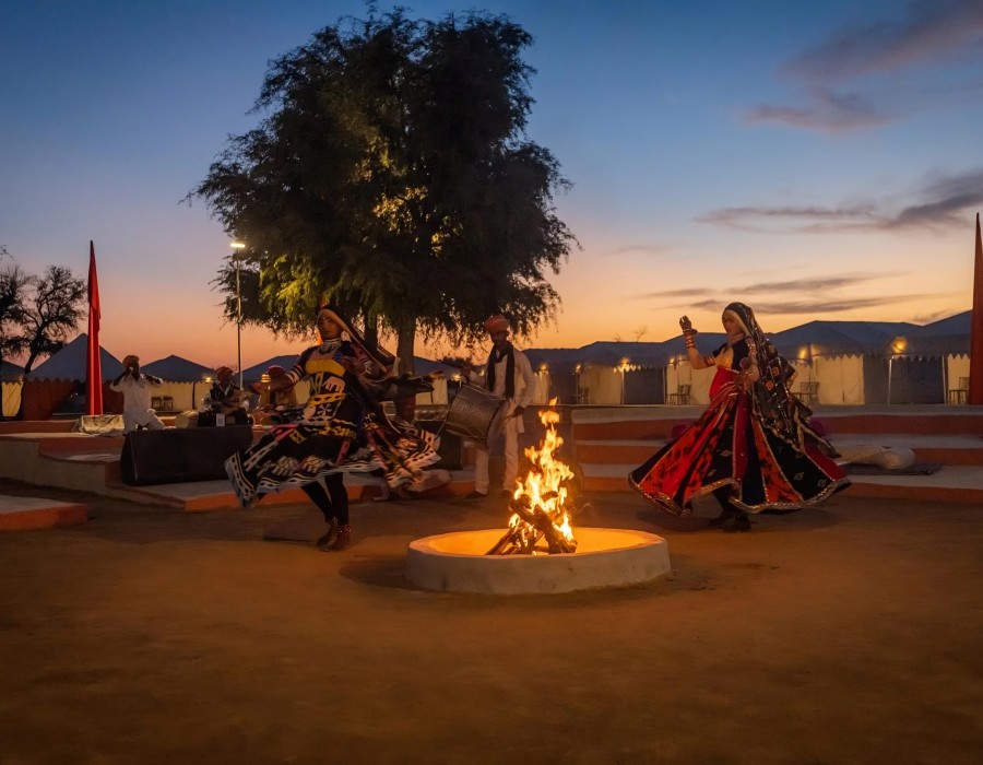 Evenings come alive with Rajasthani folk music, traditional dances, and local cuisine served under the stars. It’s not just a stay; it’s a cultural journey that introduces you to the rhythm, art, and flavors of the desert.