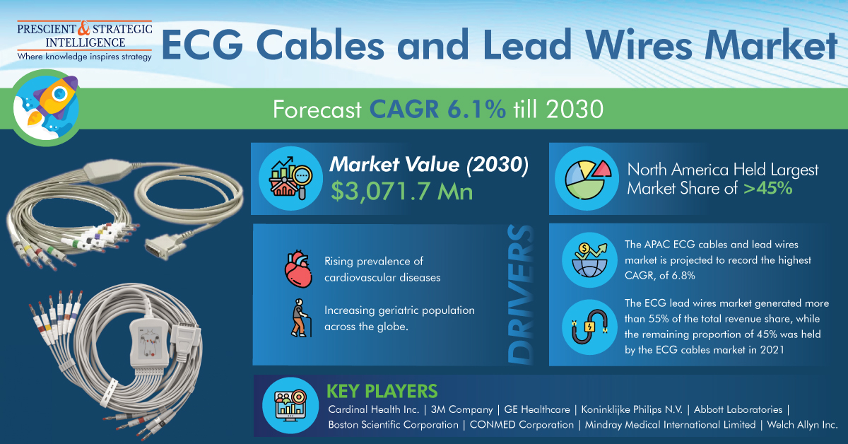 The increasing cases of cardiovascular cases and the increasing elderly population, all over the world has a direct impact on the demand for ECG cables and lead wires. The total requirement for ECG cables and lead wires will reach USD 3,071.7 million, by the end of this decade.