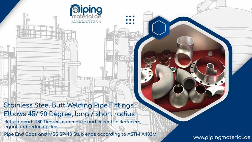 Get connected with verified and audited Stainless Steel Pipe Fittings suppliers in UAE and buy SS Buttweld Fittings 10% to 40% cheaper price in Middle East. Check weight and dimensions.