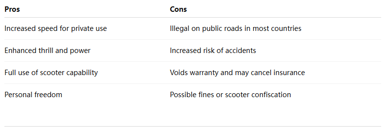 - Laws Vary by State: Some states cap e-scooter speeds at 15–20 mph. Removing limiters can violate traffic laws.