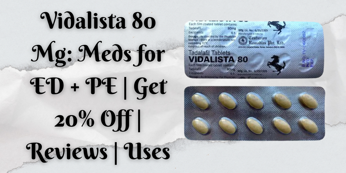 Vidalista 80mg tablet belongs to the PDE-5 hormone-blocking off own family, namely the Tadalafil own family. 'Centurion Laboratories' typical brand name for the medicine “Tadalafil is Vidalista”. “Vidalista 80 mg contains general Tadalafil”, the main component in drugs. You can take the tablets after swallowing a well-known tablet containing “Tadalafil 80 mg”. Tadalafil allows guys get an erection by way of enjoyable their arteries and increasing blood flow to their genitalia. The biggest distinction between “Tadalafil and Viagra” (Sildenafil) is how long the medicines remaining. Vidalista 80 can last up to 36 hours, even as Sildenafil handiest lasts 4 to 6 hours. Tadalafil does no longer reason an erection, and sexual stimulation is still essential to supply one.