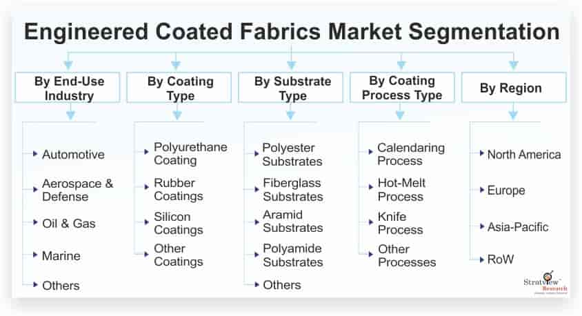 Stratview Research has launched a new report, titled Engineered Coated Fabrics Market segmented by End-Use Industry Type (Automotive, Aerospace & Defense, Oil & Gas, Marine, and Others), by Coating Type (Polyurethane, Rubber, Silicon, and Others), by Substrate Type (Polyester, Fiberglass, Aramid, Polyamide, and Others), by Coating Process Type (Calendaring, Hot-Melt, Knife, and Others), and by Region (North America, Europe, Asia-Pacific, and Rest of the World).
