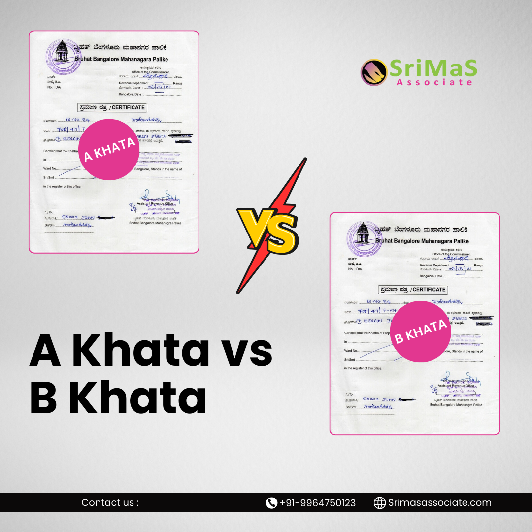 In the event that you own property in Bangalore or plan to invest in real estate, understanding the distinction between A Khata and B Khata is crucial. These terms define the legality and taxation status of properties in the city. In this guide, Srimas Associate will walk you through the essential differences between A Khata vs B Khata documents, providing you with clarity on what they mean for property possession and transactions.