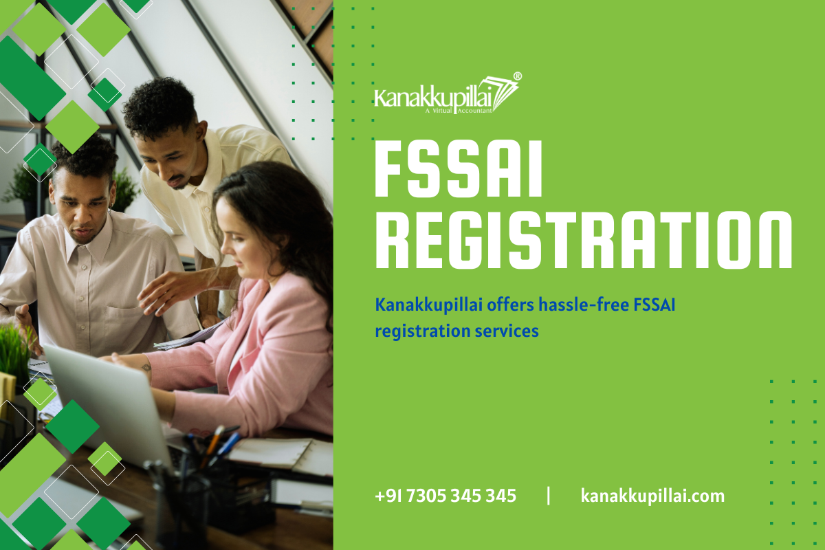 Kanakkupillai offers hassle-free FSSAI registration services, ensuring your food business complies with safety standards. With expert guidance, we streamline the process, from documentation to filing, making it swift and straightforward. Protect your brand reputation and gain consumer trust with our professional assistance. Let Kanakkupillai handle your FSSAI registration needs, so you can focus on delivering quality products to your customers.