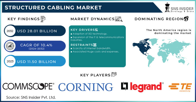 The Structured Cabling Market size is expected to be valued at USD 11.50 Billion in 2023. It is estimated to reach USD 28.01 Billion by 2032 with a growing CAGR of 10.4% over the forecast period 2024-2032.