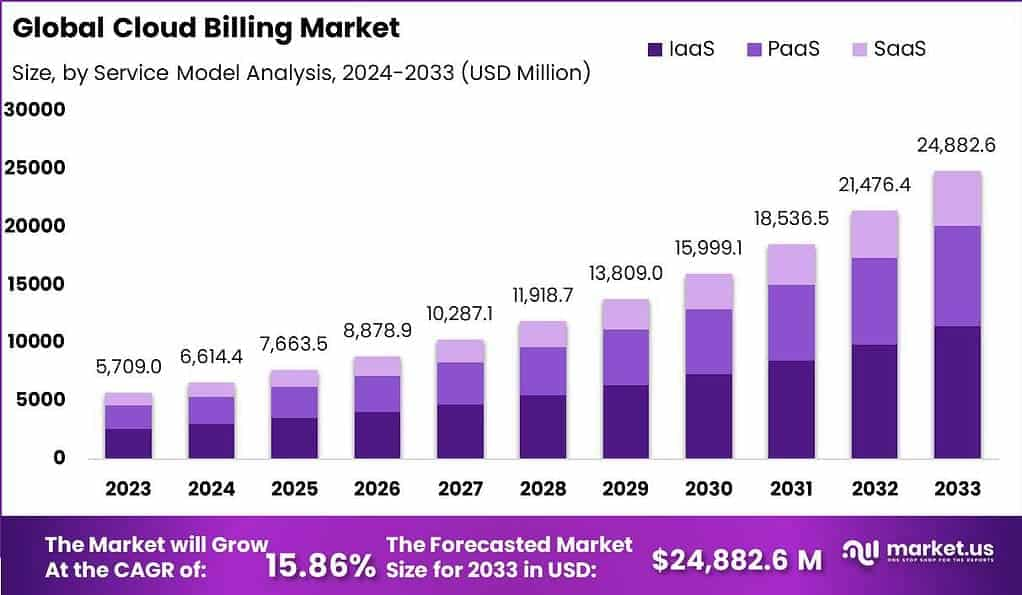 The global cloud billing market is witnessing remarkable growth due to the widespread adoption of cloud-based services and the increasing demand for scalable, automated billing systems. Valued at USD 5,709.0 million in 2023, the market is projected to reach approximately USD 24,882.6 million by 2033, growing at a CAGR of 15.86% during the forecast period. As enterprises migrate to digital infrastructure, there is a growing need for flexible billing models, cost optimization, and real-time billing data analytics. This trend is further driven by the rising complexity of subscription-based models, multi-cloud environments, and regulatory compliance requirements worldwide.