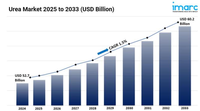 The global urea market size reached USD 52.7 Billion in 2024. Looking forward, IMARC Group expects the market to reach USD 60.2 Billion by 2033, exhibiting a growth rate (CAGR) of 1.5% during 2025-2033.