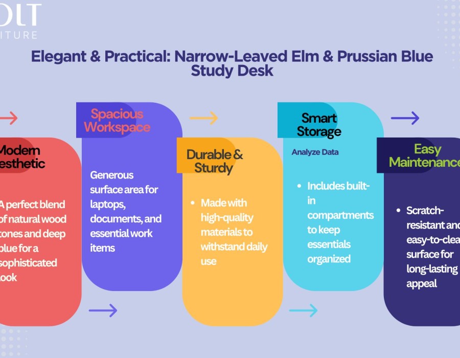 Elegant & Practical: Narrow-Leaved Elm & Prussian Blue Study Desk