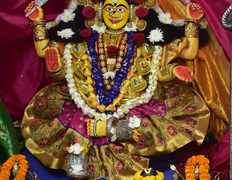 The idol of Maa Cuttack Chandi is striking and commanding. She is depicted with multiple arms, each holding various weapons symbolizing her strength and power. Devotees believe that worshipping Maa Cuttack Chandi can help them overcome obstacles and challenges in their lives. The idol is usually embellished with beautiful sarees and jewelry, especially during the festive season, which adds to her divine allure.