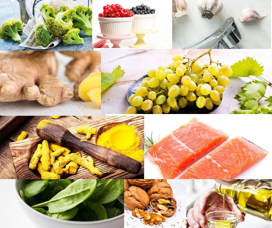 Nutrient-dense, high in antioxidants and they also have anti-inflammatory properties. Resveratrol is an antioxidant present in the skin of grapes. In one study, resveratrol showed potential for helping prevent the thickening of the joints associated with arthritis by blocking the formation of rheumatoid arthritis cells. Its extract reduces inflammation related to RA.