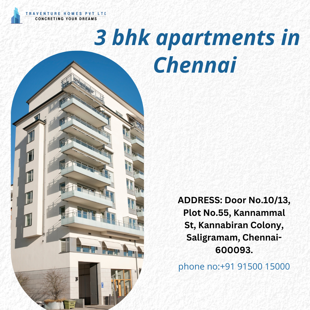 Elevate your living experience with a 3 BHK apartment from Traventure Home. Explore their range of properties to find the perfect match for your lifestyle. Visit Traventure Home’s website or contact their sales team to start your journey toward a dream home in Chennai.