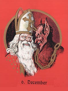 An image of Nikolaus and Krampus from the early 20th century. Wikimedia Commons