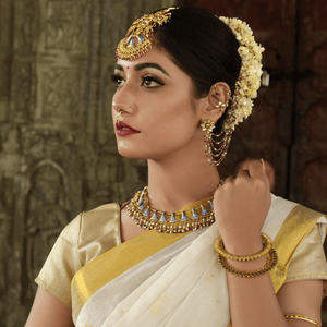 When it comes to Indian bridal jewelry, Jadau Kundan Choker Sets hold a special place. These exquisite pieces play an integral role in completing the bride's ensemble on her wedding day. Let's explore the significance of these choker sets in the context of Indian bridal adornments and discuss the popular styles and designs preferred by brides.