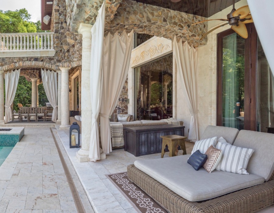 When building outdoor living design areas, comfort is of the utmost importance. Cosy and appealing settings can only be achieved by carefully choosing furniture and accessories. Rattan, teak, and wicker are weather-resistant materials that guarantee lifespan and durability, while soft fabrics and cushions provide cosiness and warmth.