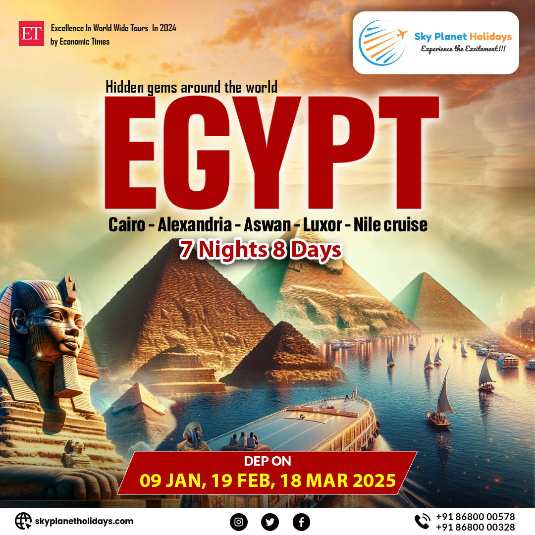 Egypt in 2025 promises a blend of ancient history and modern-day charm, waiting for you to explore. Book your affordable Egypt tour package with Sky Planet Holidays and experience the adventure of a lifetime. We offer the best Egypt tour packages at unbeatable prices, ensuring a memorable trip filled with wonder and excitement.
