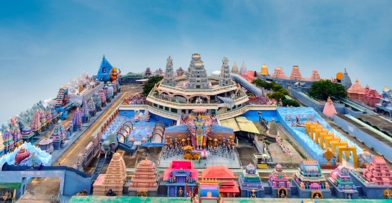Once you step inside the grand inviting entrance, the 3 km pathway inside the mythological museum includes over 3000 sculptures, statues categorized as temples of India, sculptors representing prominent episodes from great epics, and Puranas among other attractions.