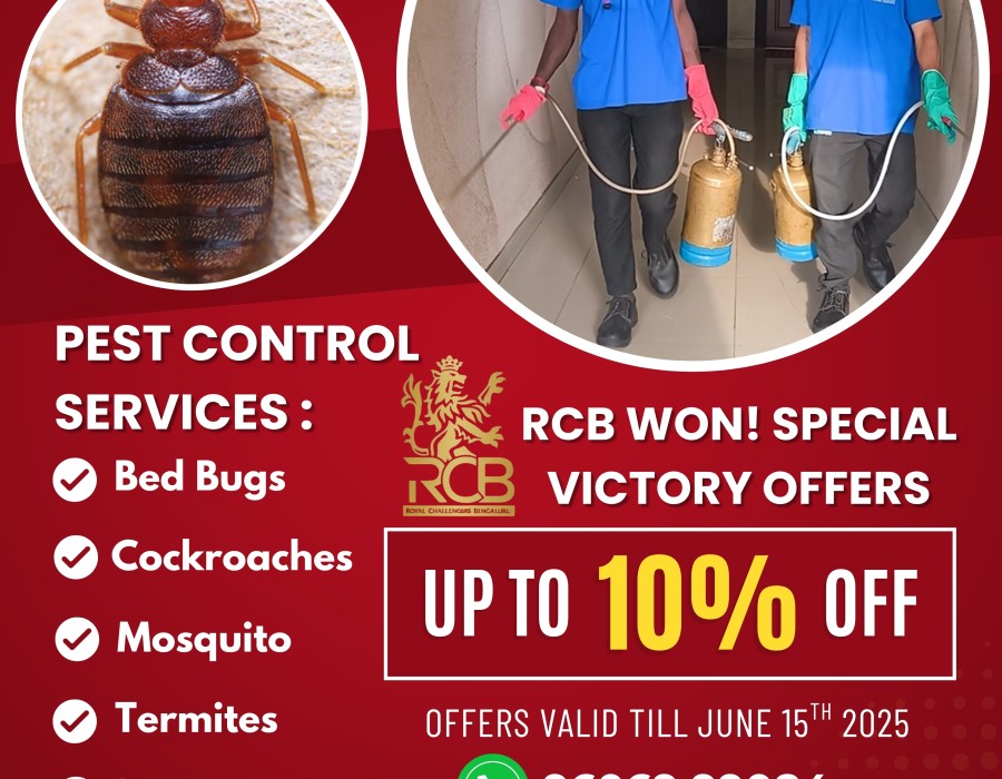RCB fans, the celebrations are not just on the field—it’s at home too! In honor of RCB’s championship win, Kushi Pest Control Services is thrilled to offer an exclusive 10% discount on all Pest Control Services in Bangalore.